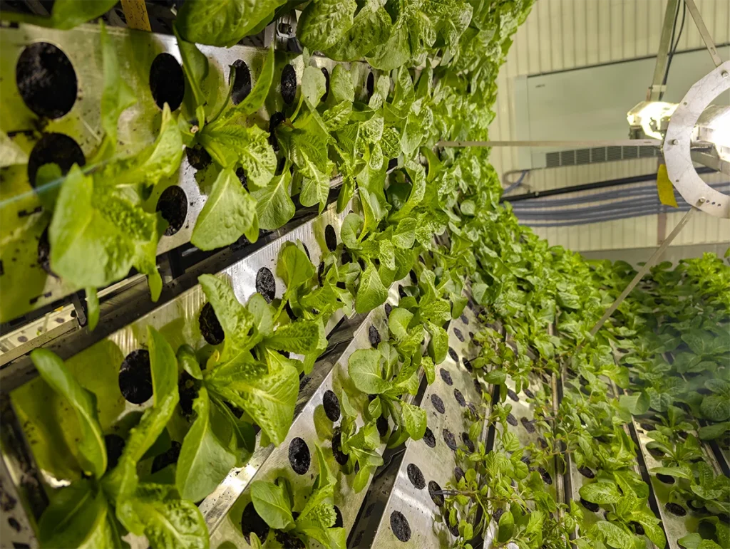 Grâce à 20 unités de culture verticale, notre ferme intérieure permet de produire localement laitues, fines herbes et autres végétaux comestibles, selon les besoins et les saisons. Une agriculture intelligente, sans pesticide, qui maximise l’espace et minimise